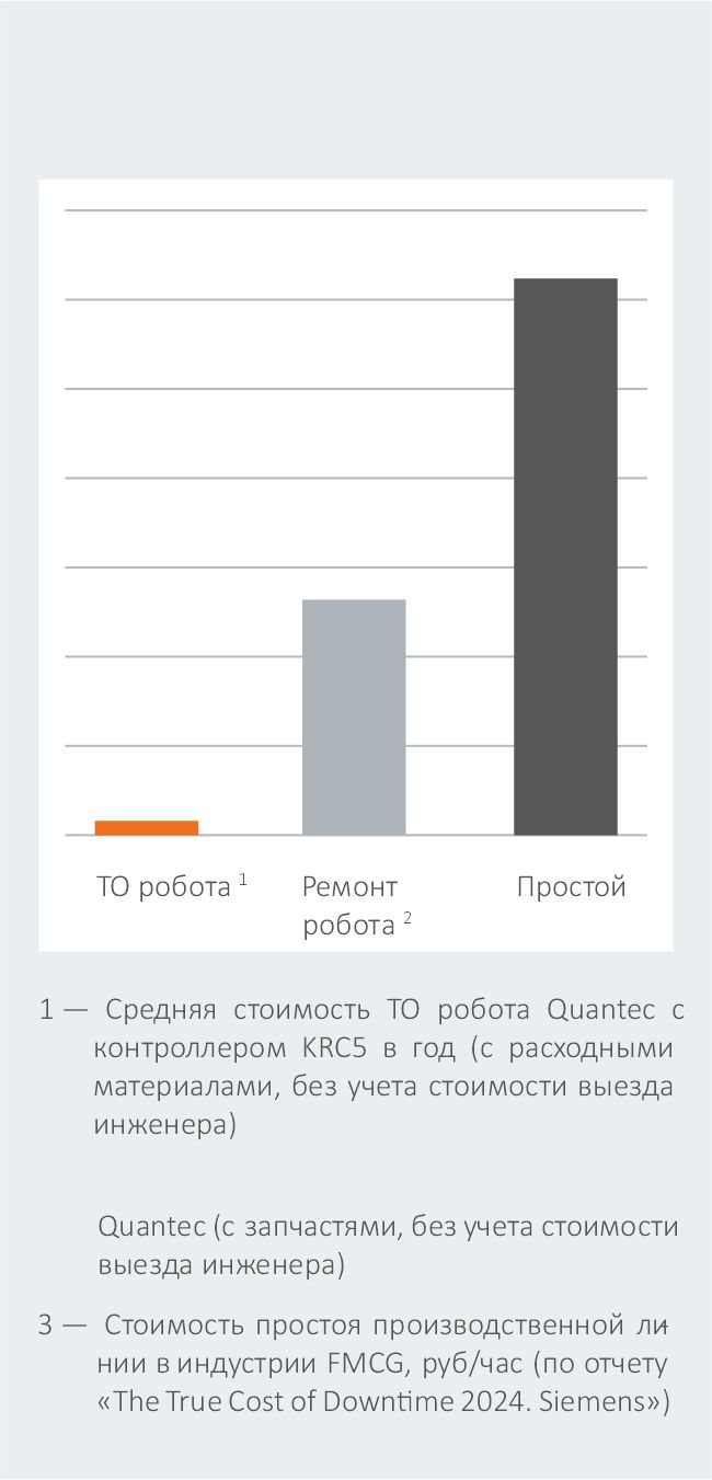 Проведение ежегодного обслуживания робота поможет свести к минимуму риски, связанные с незапланированным остановом оборудования и, как следствие, исключить непредвиденные расходы предприятия, вызванные простоем производственных линий.